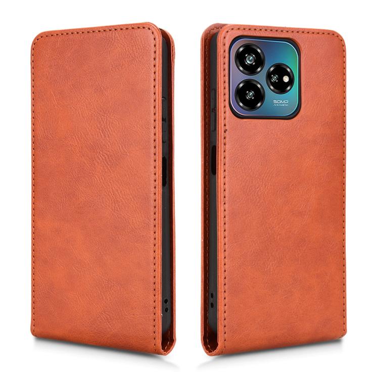 Funda de Cuero con Tapa Vertical Magnética para ZTE Axon 60 Lite Blade V60 Vita (Marrón)
