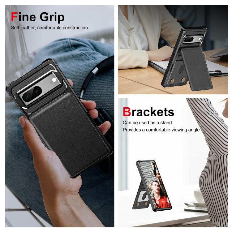 Funda de Cuero con Tapa Vertical y Tarjetero para Google Pixel 7 (Negro)
