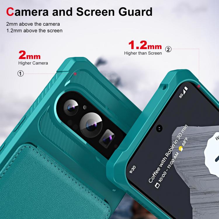 Funda de Cuero con Tapa Vertical para Google Pixel 9 Pro XL (Verde Cian)