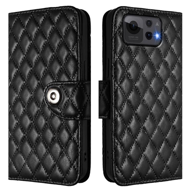 Funda de Cuero con Tapa y Cordón para Asus Zenfone 12 Ultra con Textura Rómbica (Negra)