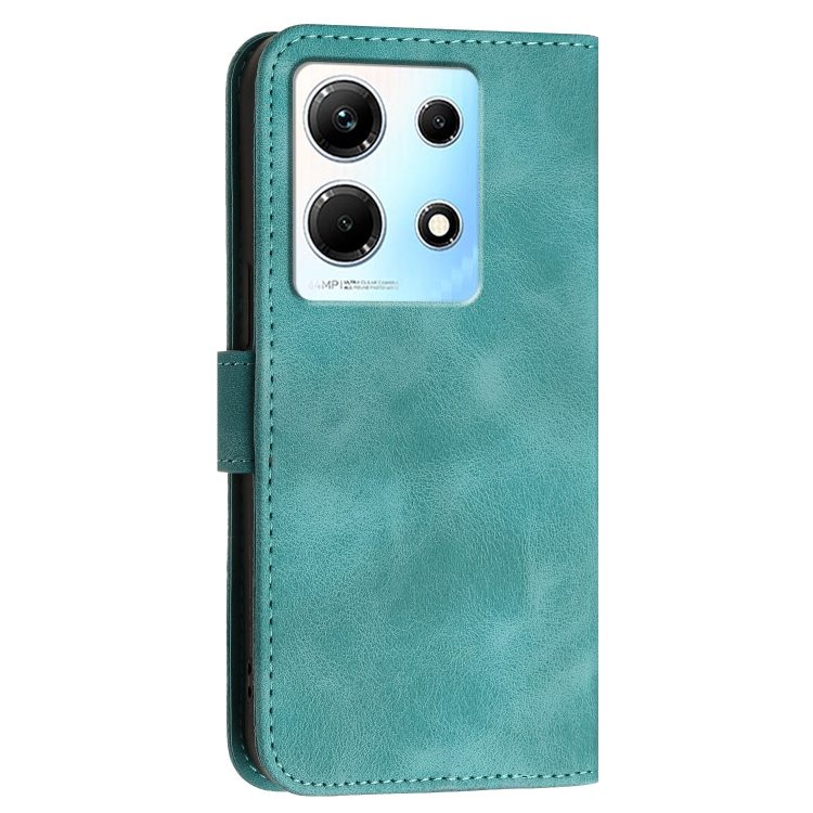 Funda de Cuero con Tapa y Cordón para Infinix Note 30 4G Yx0080 con Diseño Mariposa y Cuadrícula (Azul Claro)