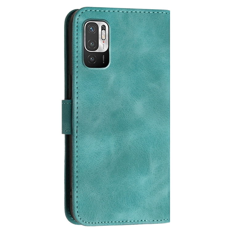 Funda de Cuero con Tapa y Cordón para Redmi 10 Yx0080 con Diseño En Relieve de Mariposa y Cuadrícula (Azul Claro)