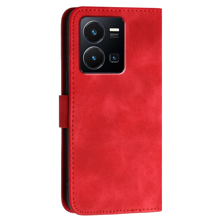 Funda de Cuero con Tapa y Cordón para Vivo Y35 4G Global Yx0080 con Diseño En Relieve de Mariposa y Cuadrícula (Rojo)