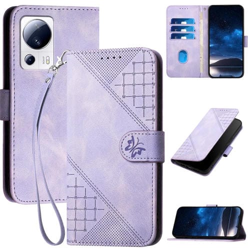 Funda de Cuero con Tapa y Cordón para Xiaomi Civi 2 Yx0080 con Diseño En Relieve de Mariposas y Cuadrícula (Morado Claro)