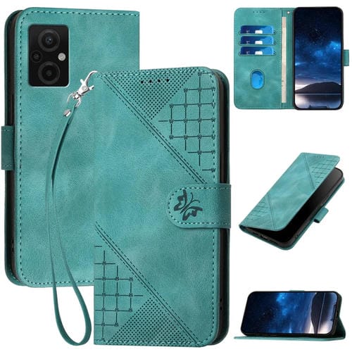 Funda de Cuero con Tapa y Cordón para Xiaomi Poco M5 Yx0080 con Diseño de Mariposa En Relieve y Cuadrícula (Azul Claro)