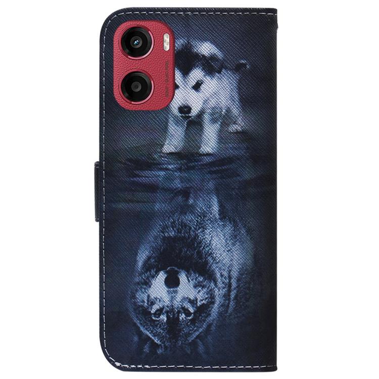 Funda de Cuero con Tapa y Dibujo a Color para Motorola Moto G05/E15 (Lobo y Perro)