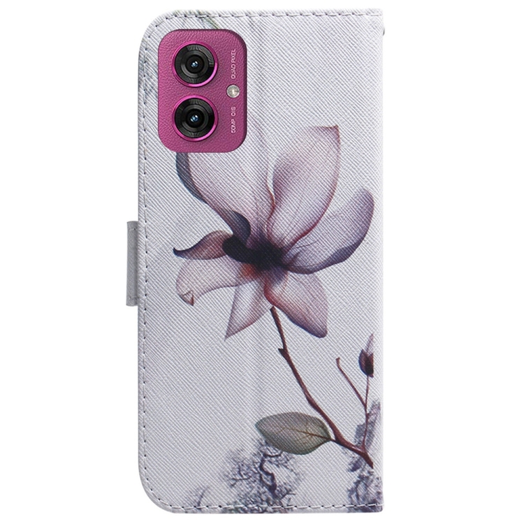 Funda de Cuero con Tapa y Dibujo a Color para Motorola Moto G55 (Magnolia)