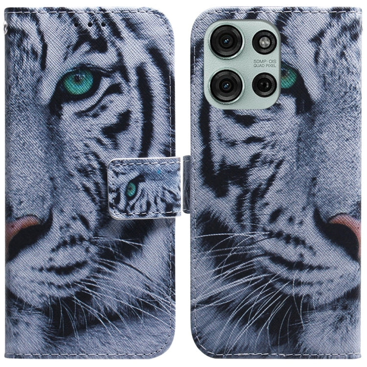 Funda de Cuero con Tapa y Dibujo a Color para Motorola Moto G75 5G (Tigre)