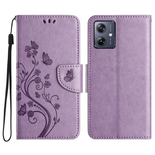 Funda de Cuero con Tapa para Motorola Moto G35 con Diseño de Flores y Mariposas (Morado Claro)