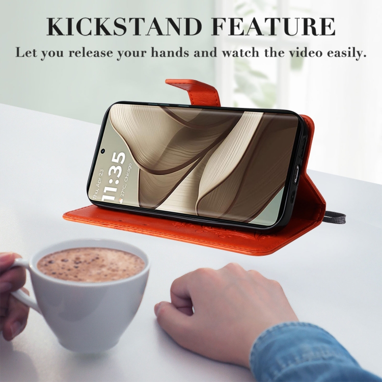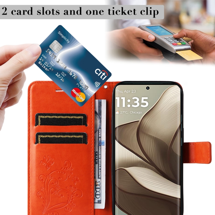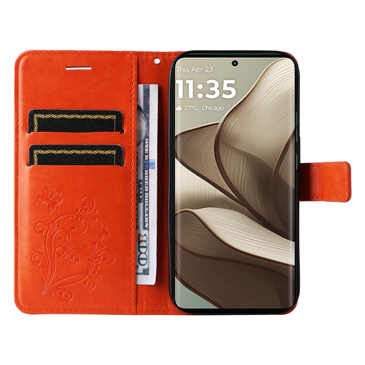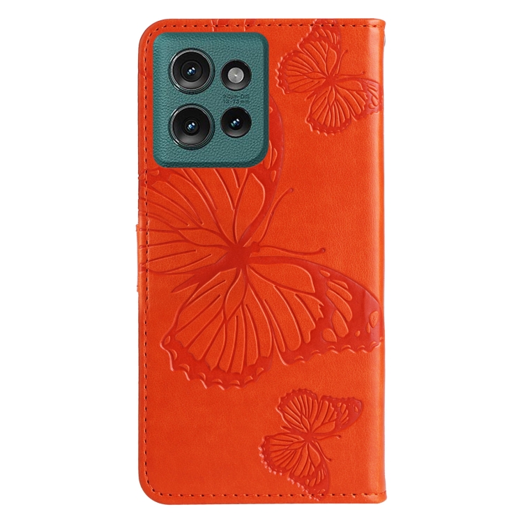 Funda de Cuero con Tapa y Mariposa en Relieve 3D para Motorola Edge 50 5G (Naranja)