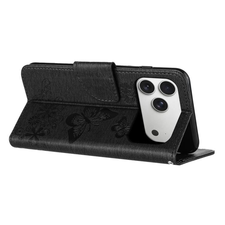 Funda de cuero con tapa y diseño de mariposa para iPhone 17 Pro (negra)
