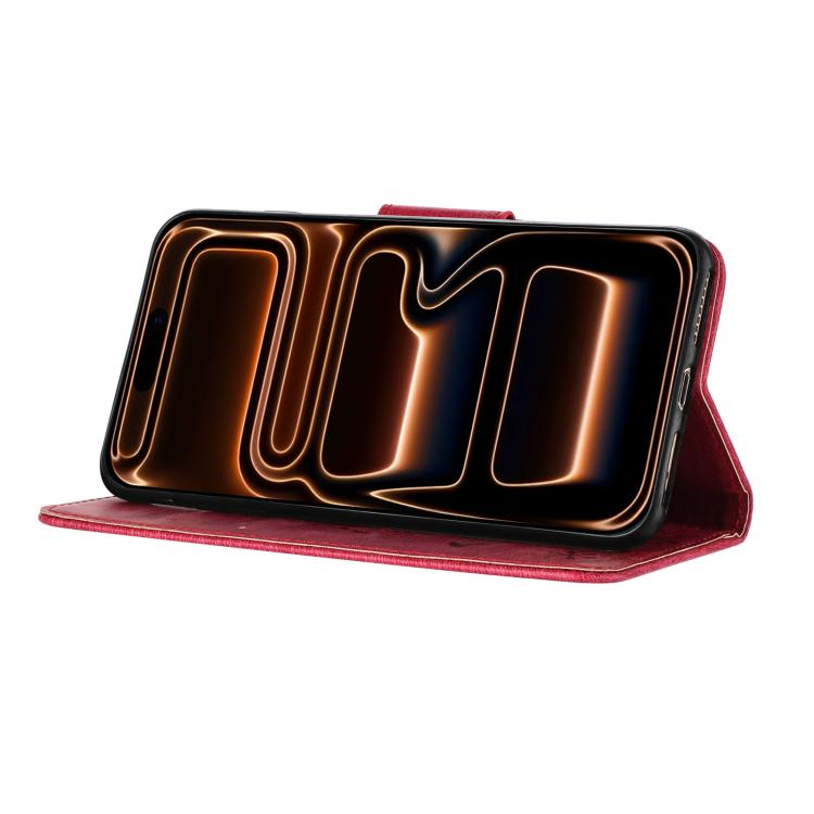 Funda de cuero con tapa y diseño de mariposa para iPhone 17 Pro (roja)