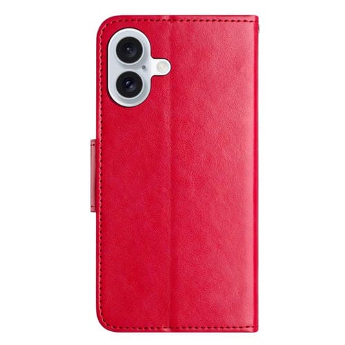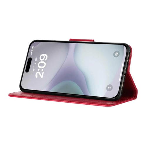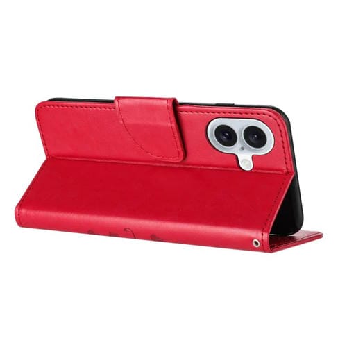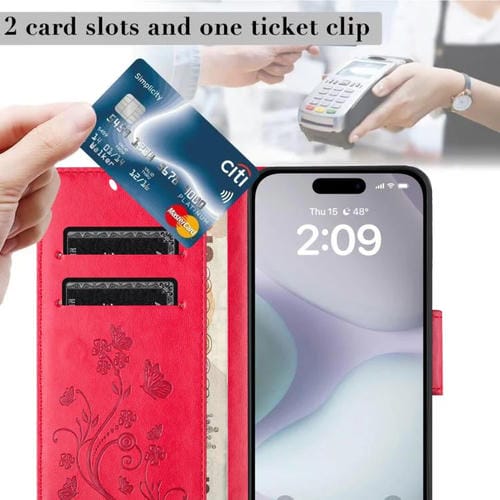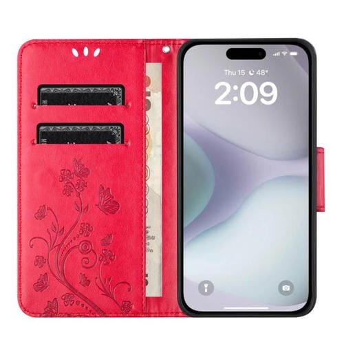 Funda de cuero con tapa y diseño de mariposas y flores para iPhone 17 (roja)