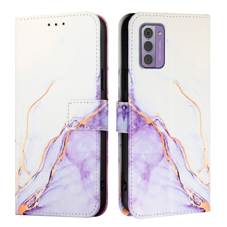 Funda de Cuero con Tapa y Diseño Mármol para Nokia G42/G310 Pt003 (Blanco y Morado)