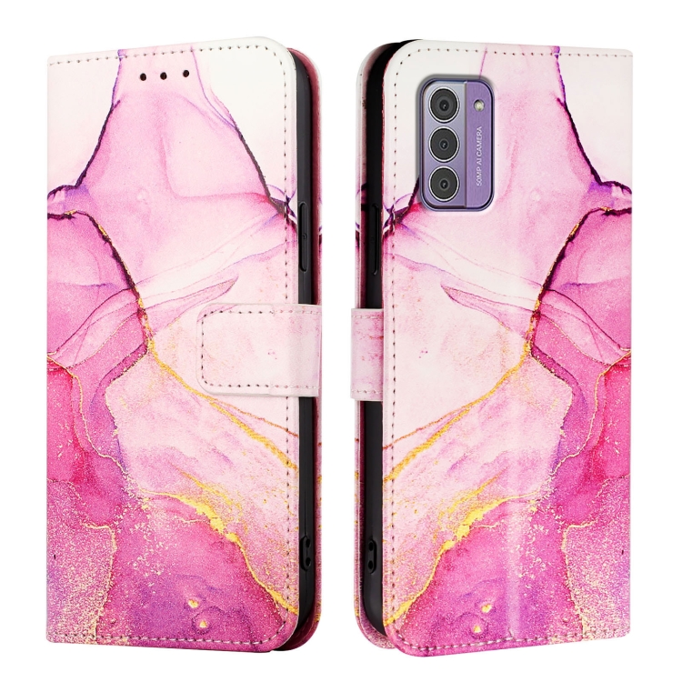 Funda de Cuero con Tapa y Diseño de Mármol para Nokia G42/G310 Pt003 (Rosa, Morado y Dorado)