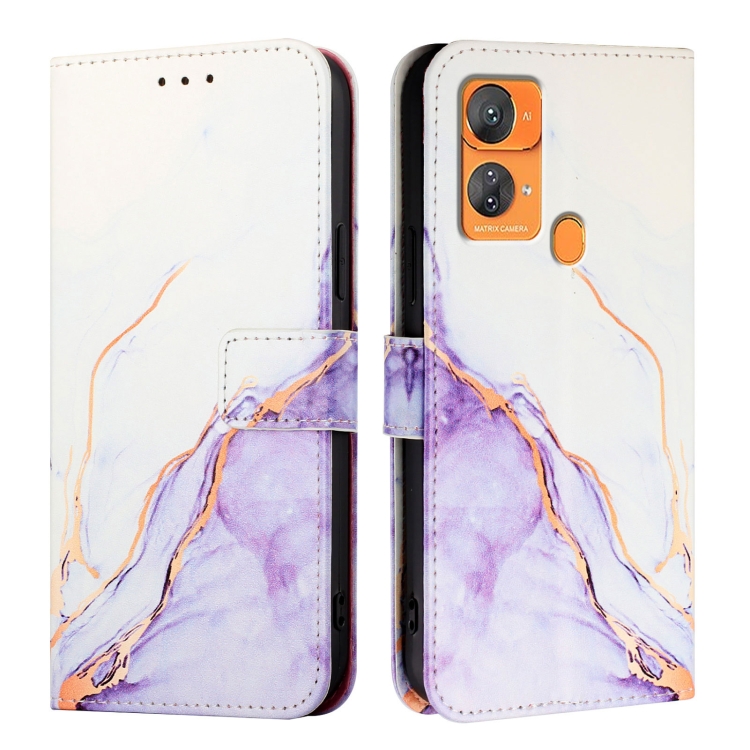 Funda de Cuero con Tapa y Diseño Mármol para Oukitel C33 Pt003 (Blanco y Morado)