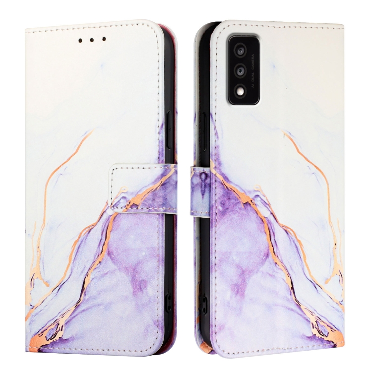 Funda de Cuero con Tapa para TCL 30T T603Dl Pt003 con Diseño Mármol (Blanco y Morado)