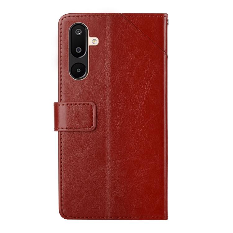 Funda de cuero con tapa y diseño en forma de Y para Samsung Galaxy M36 5G (marrón)