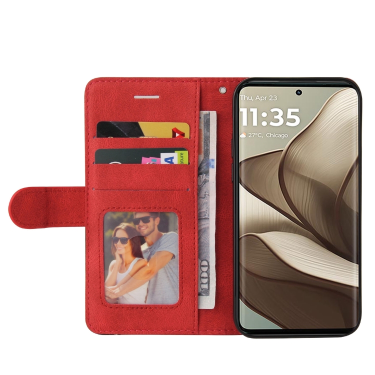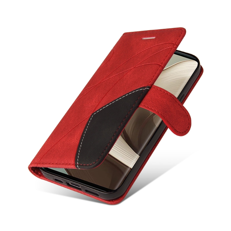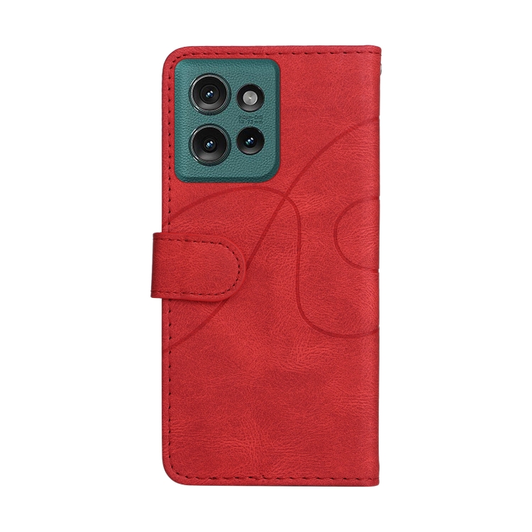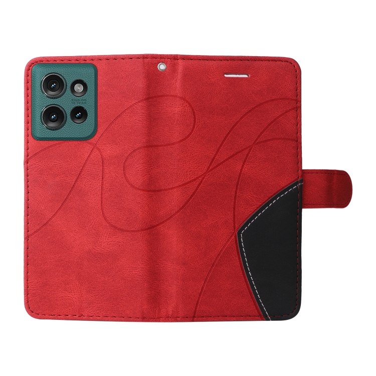 Funda de Cuero con Tapa y Dos Colores para Motorola Edge 50 5G (Rojo)