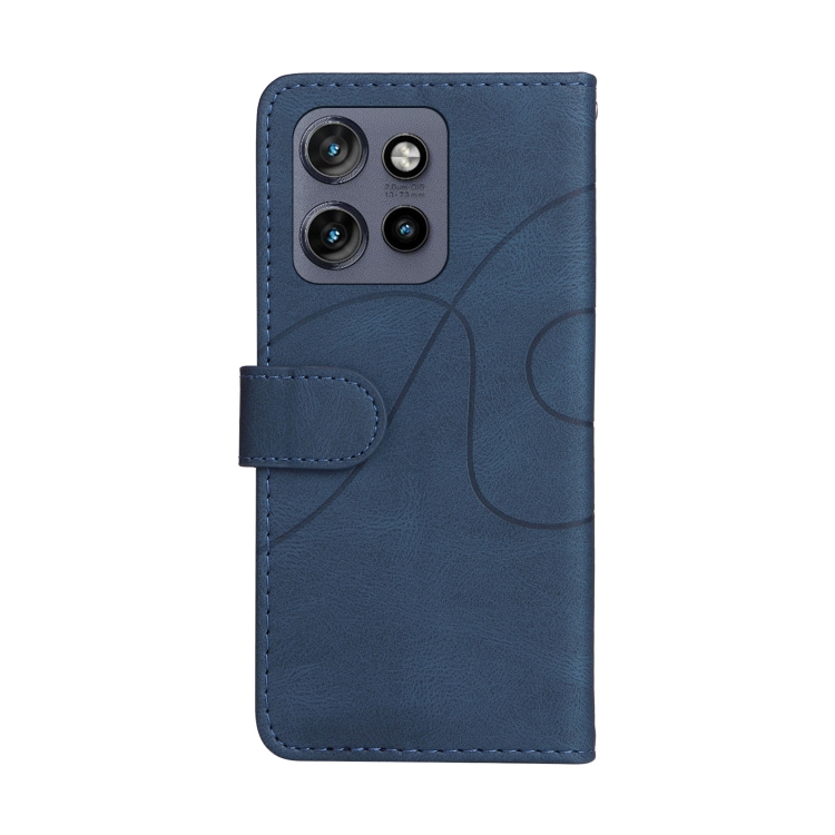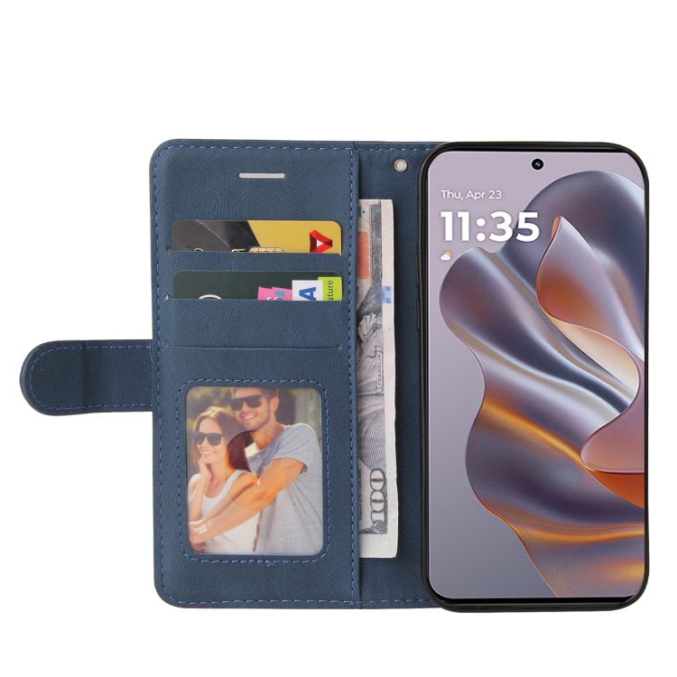 Funda de Cuero con Tapa y Dos Colores para Motorola Edge 50 Neo (Azul)