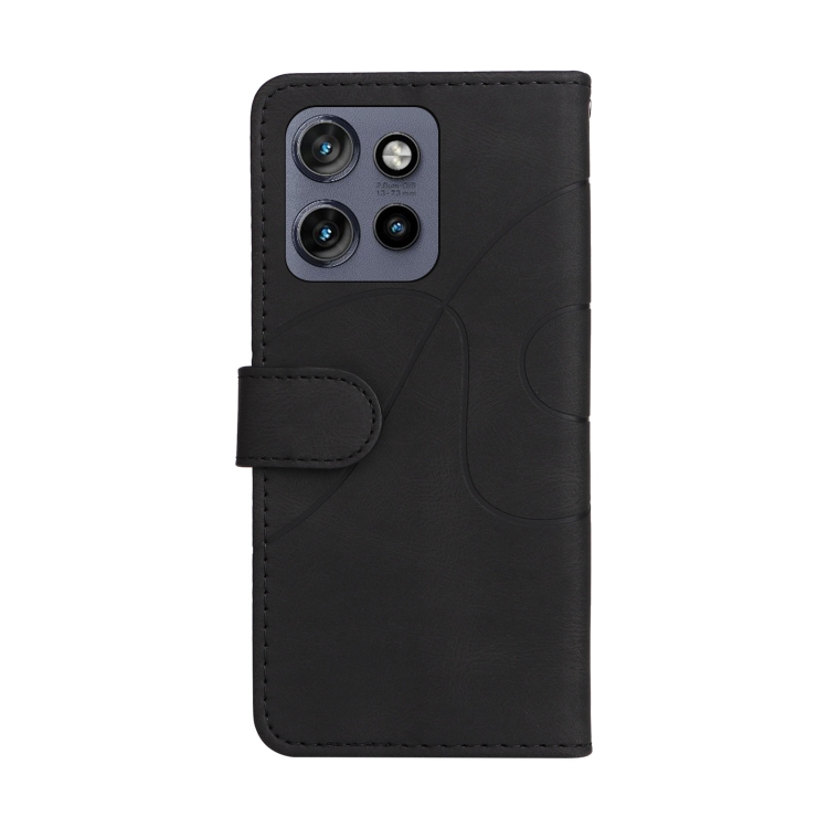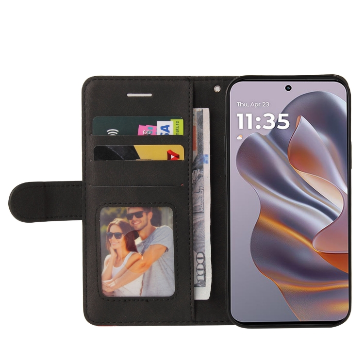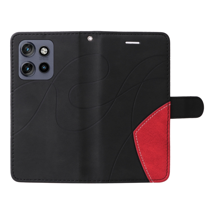 Funda de Cuero con Tapa y Dos Colores para Motorola Edge 50 Neo (Negra)