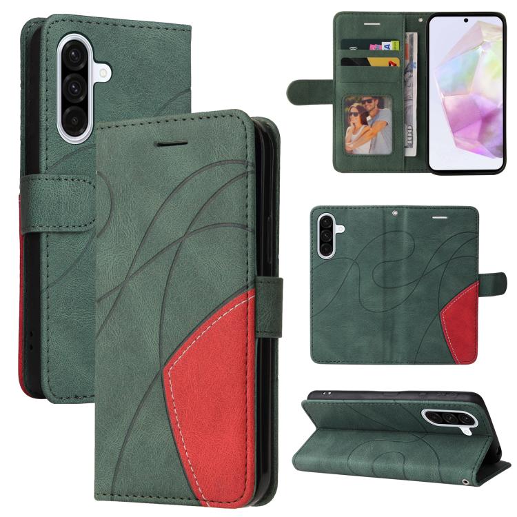 Funda de cuero con tapa y dos colores para Samsung Galaxy A36 5G / M56 5G (verde)