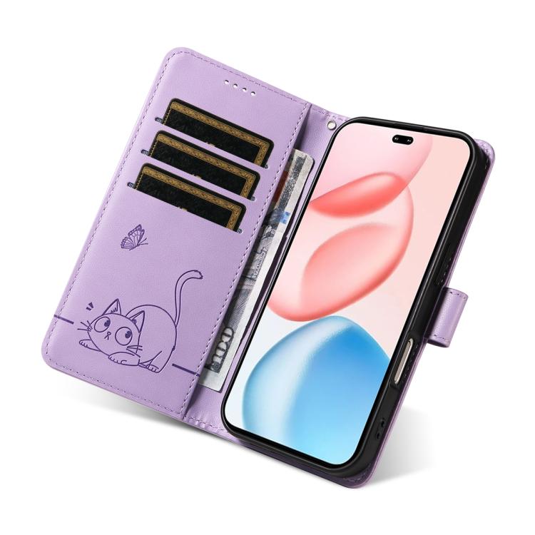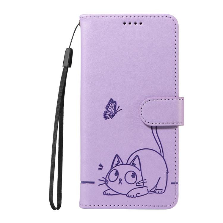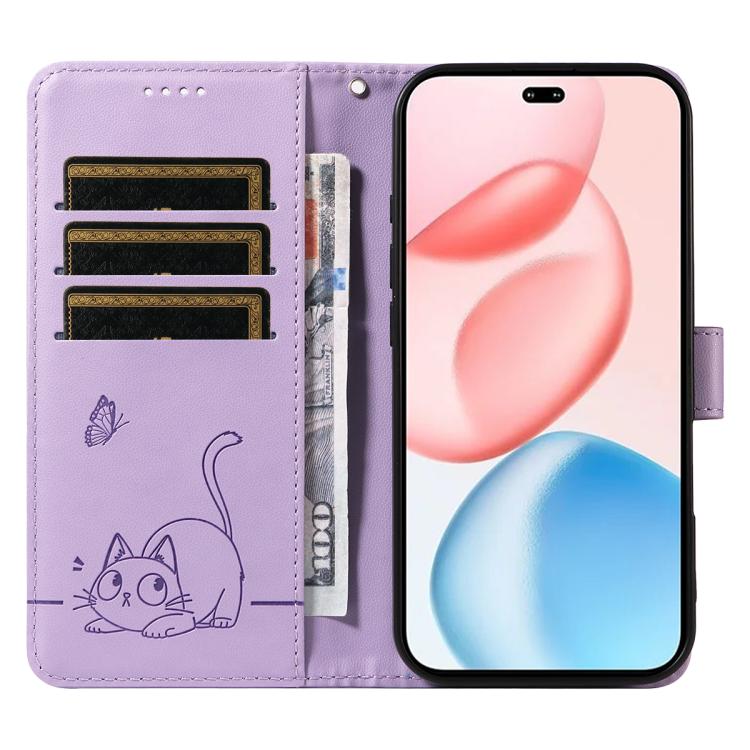 Funda de cuero con tapa y estampado de gato adorable para Honor 400 Pro Global (160,8 mm) (morado)