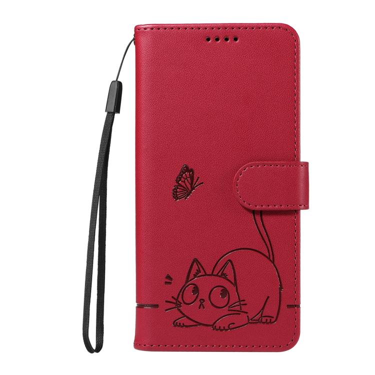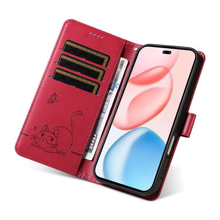 Funda de cuero con tapa y estampado de gato adorable para Honor 400 Pro Global (160,8 mm) (Rojo)