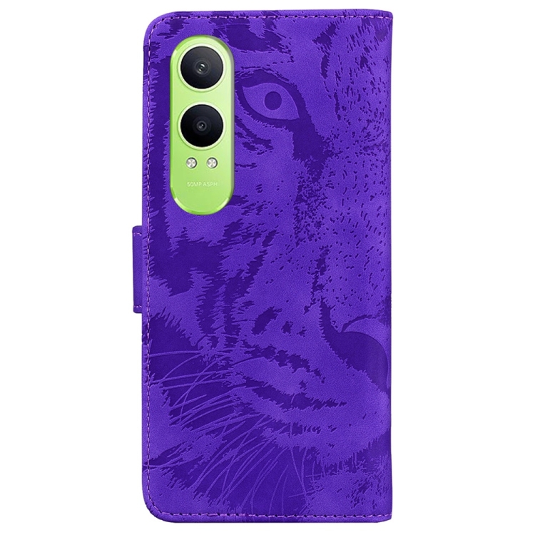 Funda de Cuero con Tapa y Estampado de Tigre para Oppo K12X (Morado)