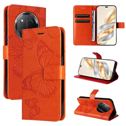 Funda de Cuero con Tapa y Patrón Mariposa 3D para Honor X9C 5G Global (Naranja)