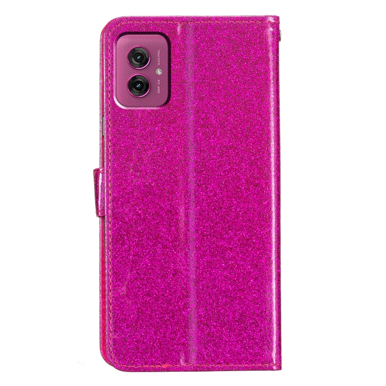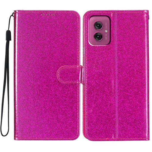 Funda de Cuero con Tapa y Purpurina para Motorola Moto G55 (Rosa y Rojo)