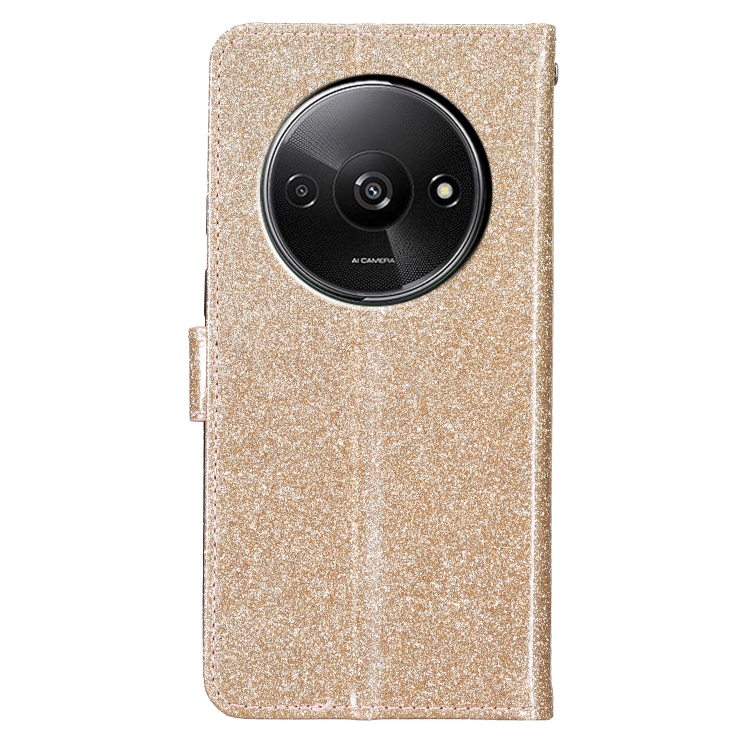 Funda de Cuero con Tapa y Purpurina para Redmi A3 (Dorada)