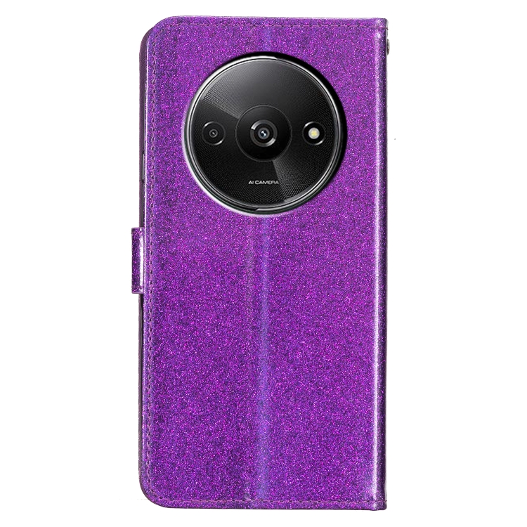 Funda de Cuero con Tapa y Purpurina para Redmi A3 (Morado)