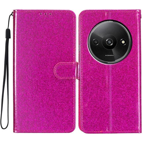 Funda de Cuero con Tapa y Purpurina para Redmi A3 (Rosa y Rojo)