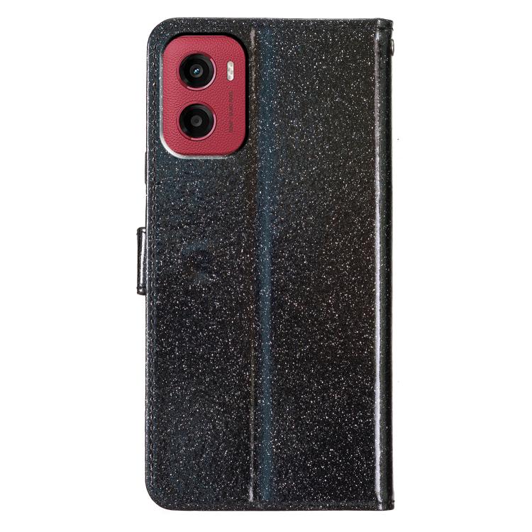 Funda de Cuero con Tapa y Purpurina para Motorola Moto G05 (Negra)