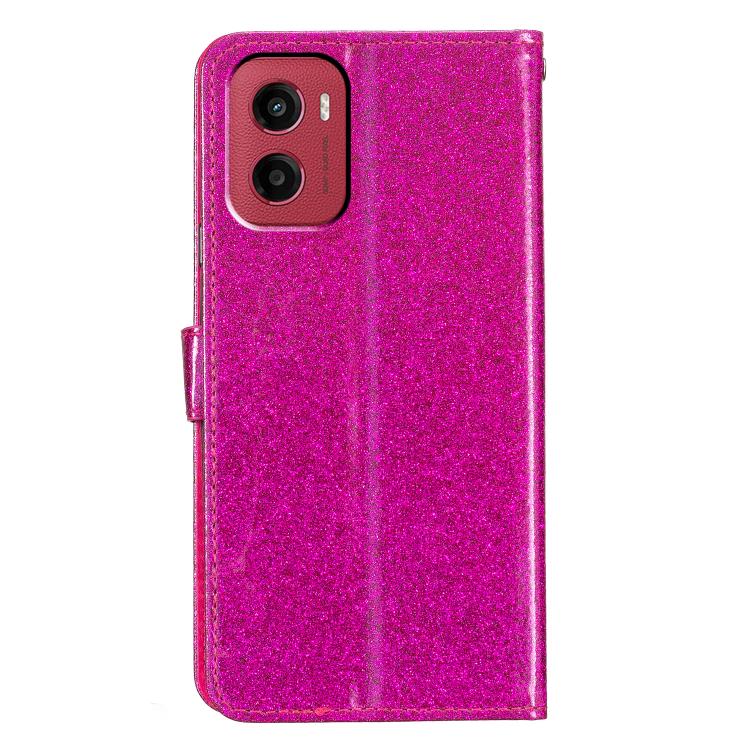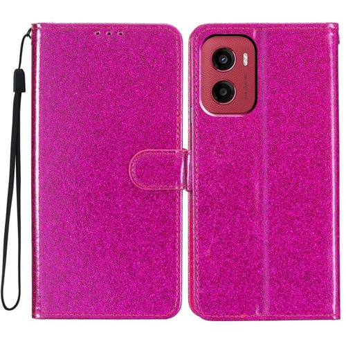 Funda de Cuero con Tapa y Purpurina para Motorola Moto G05 (Rosa y Rojo)