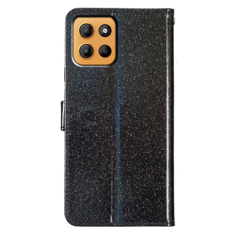 Funda de Cuero con Tapa y Purpurina para Motorola Moto G15 (Negra)