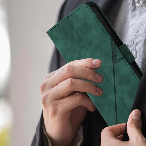 Funda de cuero con tapa y relieve 3D para iPhone 17 (verde oscuro)