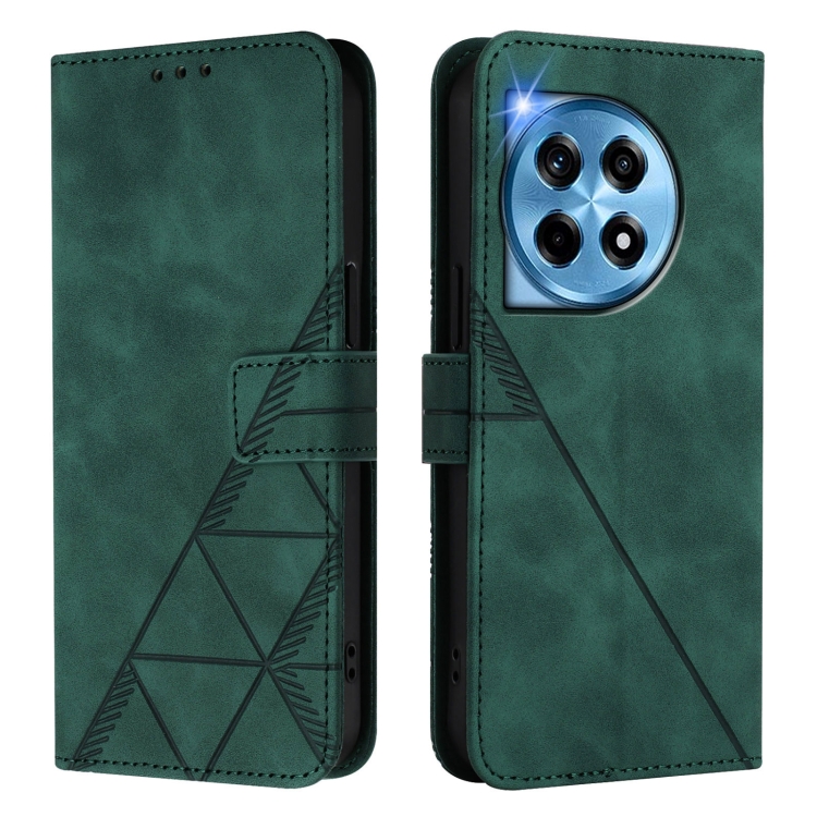 Funda de Cuero con Tapa y Relieve 3D para OnePlus 12 5G Global Crossbody (Verde)
