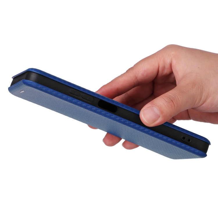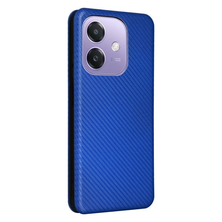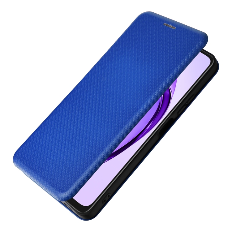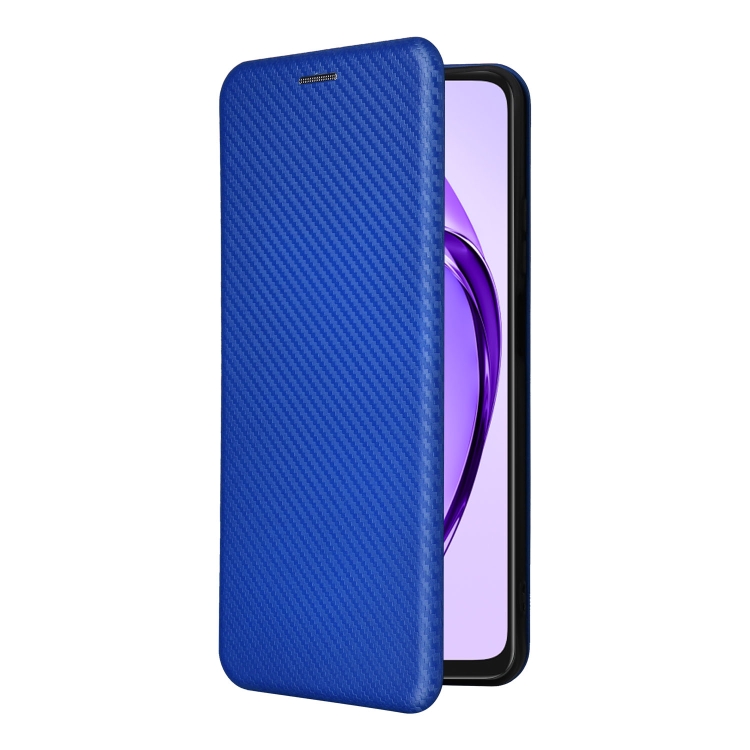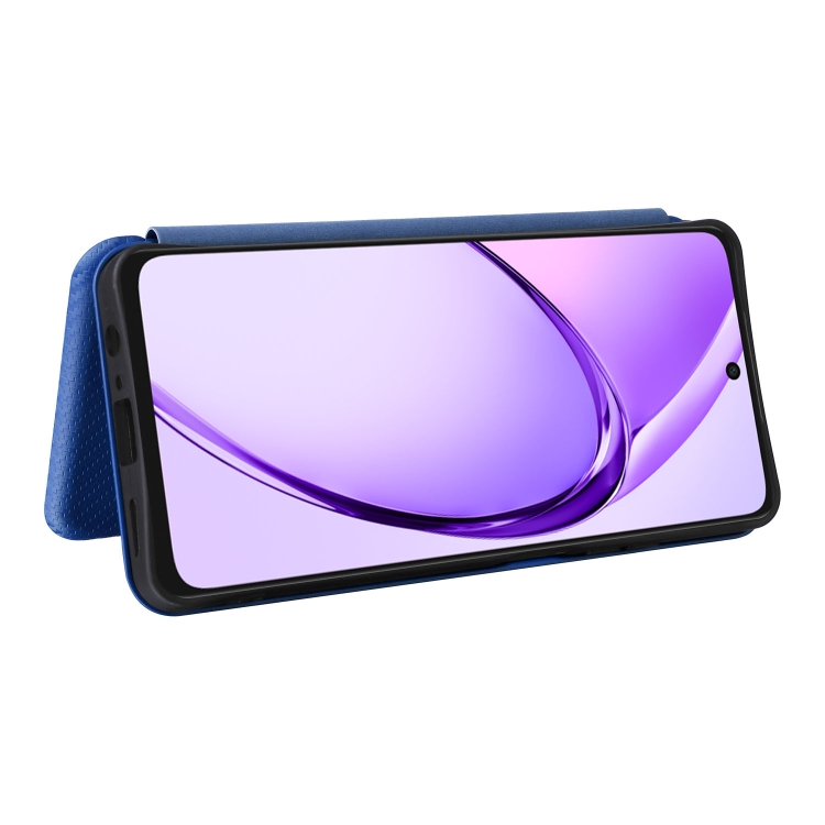 Funda de Cuero con Tapa y Textura de Fibra de Carbono para Oppo A3X 5G (Azul)