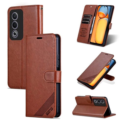 Funda de Piel de Oveja con Tapa Azns para Oppo A3 Pro 5G Global (Marrón)