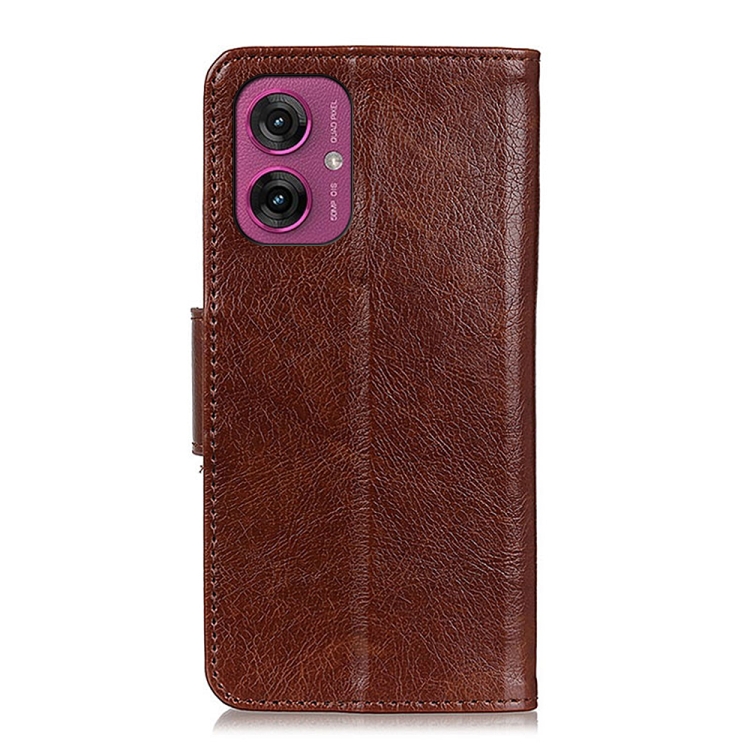 Funda de Cuero con Tapa y Textura Nappa para Motorola Moto G55 5G (Marrón)
