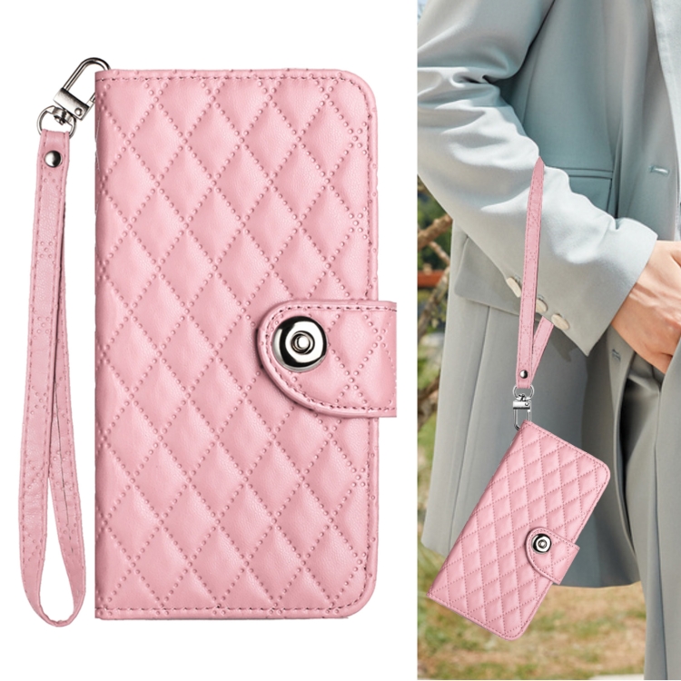 Funda de Cuero con Tapa y Textura Rombal Global para Redmi K70 Ultra 5G con Cordón (Rosa)