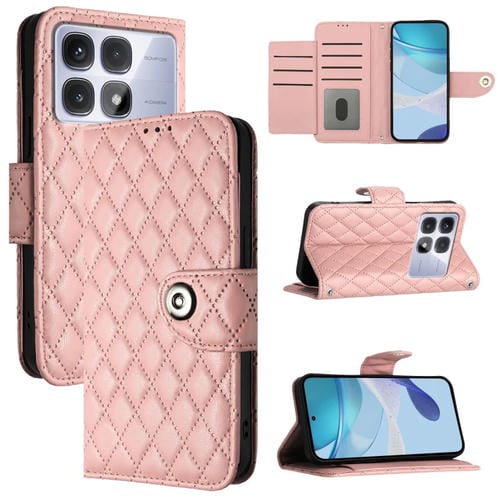 Funda de Cuero con Tapa y Textura Rombal Global para Redmi K70 Ultra 5G con Cordón (Rosa Coral)