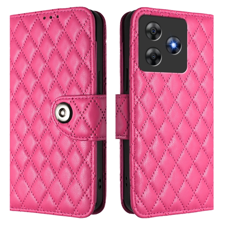 Funda de Cuero con Tapa y Textura Rombal para BlackView Wave 8C con Cordón (Rosa y Rojo)