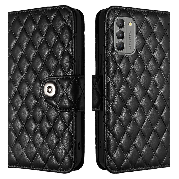 Funda de Cuero con Tapa y Textura Rombal para Nokia G400 con Cordón (Negro)