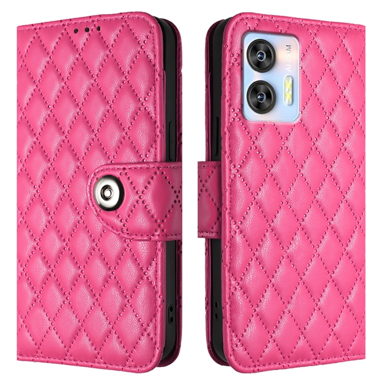 Funda de Cuero con Tapa y Textura Rombal para Oukitel C35/C36 con Cordón (Rosa y Rojo)