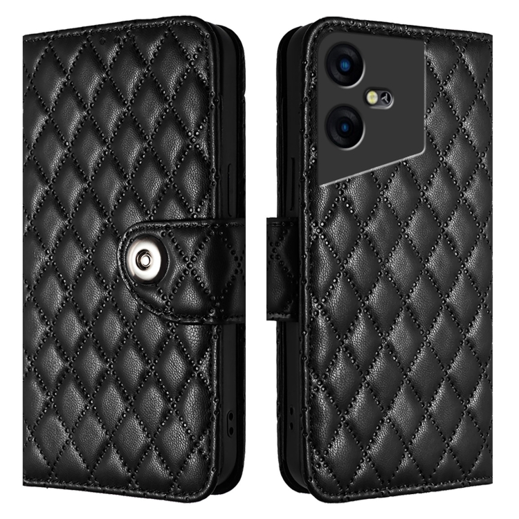 Funda de Cuero con Tapa y Textura Rombal para Tecno Pova Neo 3 con Cordón (Negro)