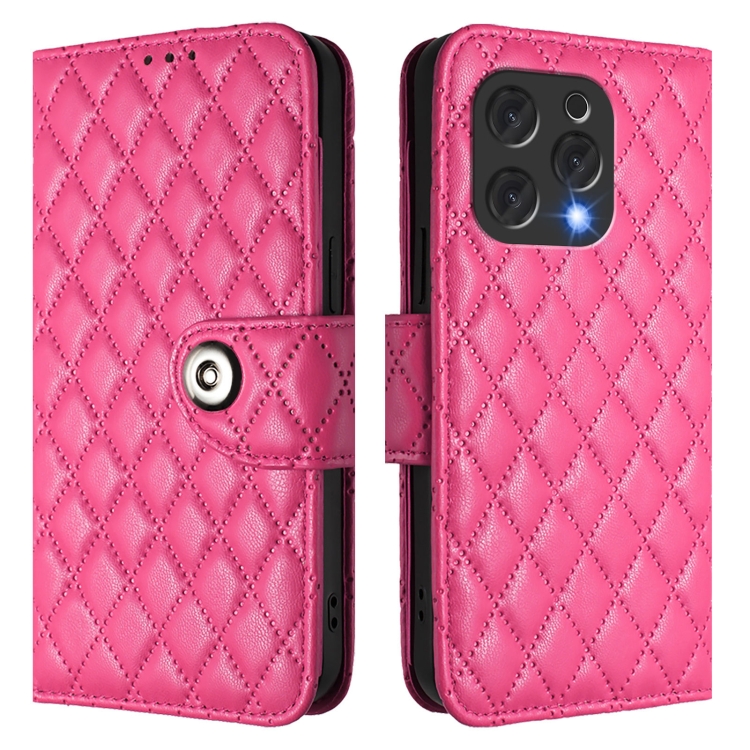 Funda de Cuero con Tapa y Textura Rombal para Doogee N55 Plus con Cordón (Rosa y Rojo)