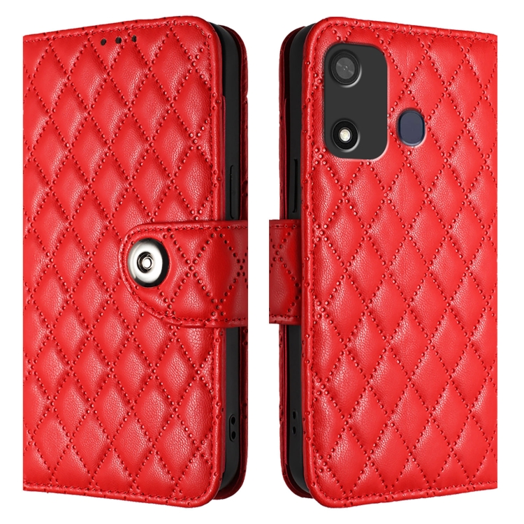 Funda de Cuero con Tapa y Textura Rombal para Teléfono Itel P17/A27 con Cordón (Rojo)